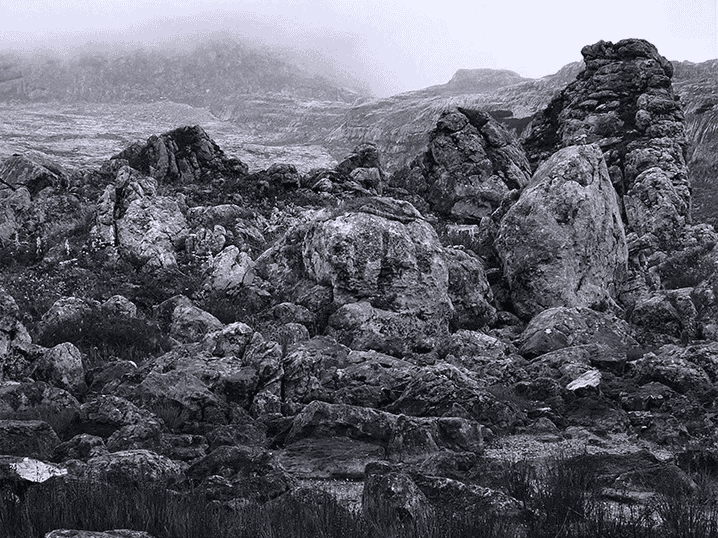 Berg volgt de verhalen van de stenen, rotsen en pieken van een uitgestrekt berglandschap. Strakke zwart-wit beelden en een minimalistische soundtrack trekken de kijker mee in een levendige, intense, filmische ervaring. Net als alle gevoel voor schaal verloren gaat in deze rauwe en oeroude filmische reis door het panorama van de bergen, zien we drie kleine menselijke figuren – wandelaars die de top proberen te bereiken. Gedurende de film volgen we hun tocht door opkomende mist, heftige regen en onweer en we ervaren zo de overweldigende kracht van de natuur en de onbeduidendheid van de mens daarin.