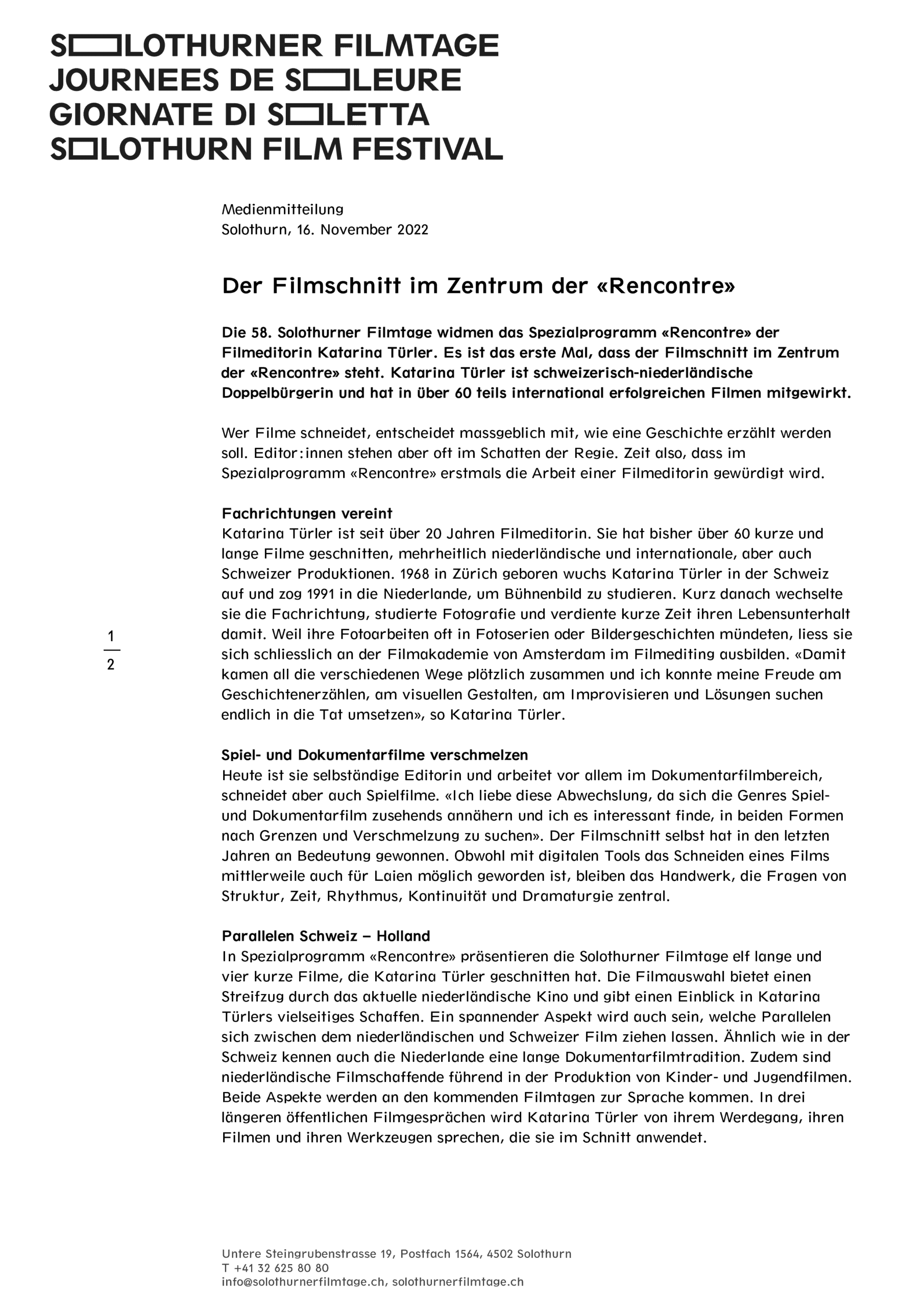 Solothurner Filmtage 2023 - Rencontre